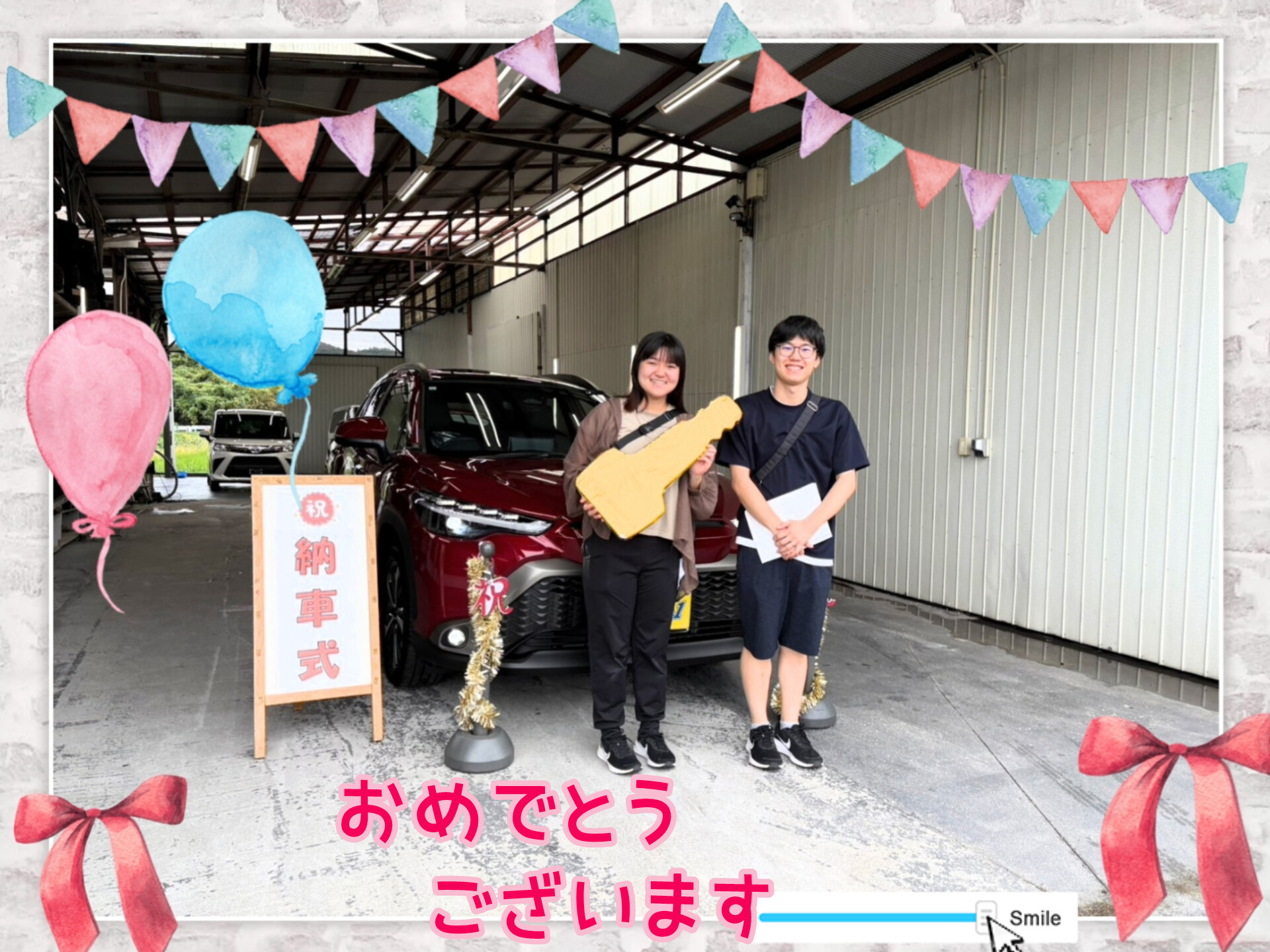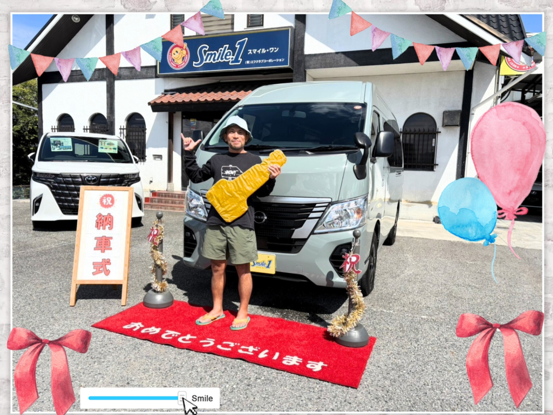 買取 スマイルセット装備車 在庫紹介 探す リース レンタカー お知らせ 新車 2025.9.7 スズキ愛車無料点検/スマイルワン 2025.8.6 夏季休暇のお知らせ 2025.7.28 暑中お見舞い申し上げます 2025.6.9 【台数限定】お買い得車 ムーヴ/スマイルワン 2025.6.1 ◇定休日変更のご案内◇ 2025.2.19 【台数限定】お買い得車 タントカスタム/スマイルワン 2025.2.19 【台数限定】お買い得車 ムーブキャンバス/スマイルワン 2025.2.19 【台数限定】お買い得車 タントファンクロス/スマイルワン 2025.2.19 【台数限定】お買い得車 タフト/スマイルワン 2025.2.19 【台数限定】お買い得車 アトレー/スマイルワン 中古車 2025.10.9 差入れをいただきました(๑ˊ͈ ꇴ ˋ͈)アリガト〜🌼 2025.9.28 差入れをいただきました(๑ˊ͈ ꇴ ˋ͈)アリガト〜🌼 2025.9.23 差入れをいただきました(๑ˊ͈ ꇴ ˋ͈)アリガト〜🌼 2025.9.14 差入れをいただきました(๑ˊ͈ ꇴ ˋ͈)アリガト〜🌼 2025.9.12 Youtube ハナチャンネル更新いたしました☆彡 2025.9.11 差入れをいただきました(๑ˊ͈ ꇴ ˋ͈)アリガト〜🌼 2025.9.2 差入れをいただきました(๑ˊ͈ ꇴ ˋ͈)アリガト〜🌼 2025.8.2 差入れをいただきました(๑ˊ͈ ꇴ ˋ͈)アリガト〜🌼 2025.7.28 差入れをいただきました(๑ˊ͈ ꇴ ˋ͈)アリガト〜🌼 2025.7.10 差入れいただきました(๑ˊ͈ ꇴ ˋ͈)アリガト〜🌼 2025.5.27 差入れをいただきました(๑ˊ͈ ꇴ ˋ͈)アリガト〜🌼 2025.4.26 差入れをいただきました(๑ˊ͈ ꇴ ˋ͈)アリガト〜🌼 買取 該当する記事がありません。 納車式 新車 2025.9.28 🚘納車式🚘新車スズキ・フロンクス 兵庫県三木市O様/スマイルワン 2025.9.25 🚘納車式🚘新車ダイハツ・ハイゼットトラック 兵庫県神戸市Y様/スマイルワン 2025.9.8 🚘納車式🚘新車ホンダ・WR-V 兵庫県明石市H様/スマイルワン 2025.8.11 🚘納車式🚘新車スズキ・スペーシアギア 兵庫県三木市F様/スマイルワン 2025.8.9 🚘納車式🚘新車トヨタ・ノア 兵庫県小野市S様/スマイルワン 2025.8.7 🚘納車式🚘新車スズキ・フロンクス 熊本県荒尾市T様/スマイルワン 2025.7.24 🚘納車式🚘新車ダイハツ・タントカスタム 兵庫県神戸市T様/スマイルワン 2025.7.12 🚘納車式🚘新車ダイハツ・タントファンクロス 兵庫県たつの市S様/スマイルワン 2025.7.5 🚘納車式🚘新車ダイハツ・ハイゼットトラック 兵庫県加古川市M様/スマイルワン 2025.4.26 🚘納車式🚘新車スズキ・ハスラー 兵庫県三木市F様/スマイルワン 2025.4.19 🚘納車式🚘新車ホンダ・ステップワゴンスパーダ 兵庫県神戸市M様/スマイルワン 2025.3.29 🚘納車式🚘新車スズキ・エブリィワゴン 大阪府枚方市Z様/スマイルワン 中古車 2025.10.5 🚍静岡県富士市K様🚍 カローラクロス ご納車オメデトウ(pq´∀`)┌iiiiii┐(´∀`pq)パチパチ 2025.10.5 🚍大阪府大阪市K様🚍 クラウンスポーツ ご納車オメデトウ(pq´∀`)┌iiiiii┐(´∀`pq)パチパチ 2025.10.5 🚍岡山県玉野市H様🚍 NT450アトラス ご納車オメデトウ(pq´∀`)┌iiiiii┐(´∀`pq)パチパチ 2025.9.28 🚍兵庫県三木市S様🚍 クラウンスポーツ ご納車オメデトウ(pq´∀`)┌iiiiii┐(´∀`pq)パチパチ 2025.9.26 🚍兵庫県神戸市F様🚍 ハイエース ご納車オメデトウ(pq´∀`)┌iiiiii┐(´∀`pq)パチパチ 2025.9.22 🚍新潟県魚沼市I様🚍 NV350キャラバン ご納車オメデトウ(pq´∀`)┌iiiiii┐(´∀`pq)パチパチ 2025.9.21 🚍和歌山県田辺市K様🚍 キャンター ご納車オメデトウ(pq´∀`)┌iiiiii┐(´∀`pq)パチパチ 2025.9.15 🚍石川県加賀市T様🚍 キャンター ご納車オメデトウ(pq´∀`)┌iiiiii┐(´∀`pq)パチパチ 2025.9.15 🚍宮崎県北諸県郡M様🚍 クラウンクロスオーバー ご納車オメデトウ(pq´∀`)┌iiiiii┐(´∀`pq)パチパチ 2025.9.8 🚍香川県高松市N様🚍 カローラツーリング ご納車オメデトウ(pq´∀`)┌iiiiii┐(´∀`pq)パチパチ 2025.8.22 🚍兵庫県神戸市U様🚍 エブリイ ご納車オメデトウ(pq´∀`)┌iiiiii┐(´∀`pq)パチパチ 2025.8.18 🚍兵庫県朝来市K様🚍 エクストレイル ご納車オメデトウ(pq´∀`)┌iiiiii┐(´∀`pq)パチパチ 新規入庫車 中古車 平成24年エルフ・Wキャブ☆入庫しました 平成24年エルフ・Wキャブ荷台クレーン☆入庫しました 令和6年カローラクロス・1.8HYBRIDZ☆入庫しました 平成29年キャンター・Wキャブ2t積PG☆入庫しました 令和7年スイフト・スポーツファイナルED☆入庫しましたꉂꉂ(๑ノ∀˂)ʷʷʷ 令和7年クラウンスポーツ・Z4WD☆入庫しましたꉂꉂ(๑ノ∀˂)ʷʷʷ 令和5年クラウンクロスオーバー・GアドバンスドレザーP4WD☆入庫しましたꉂꉂ(๑ノ∀˂)ʷʷʷ 平成31年デュトロ・平ボディ3.9t積PG☆入庫しましたꉂꉂ(๑ノ∀˂)ʷʷʷ 平成30年エルフ・2t積パワーゲート☆入庫しましたꉂꉂ(๑ノ∀˂)ʷʷʷ 平成31年ダイナ・Wキャブ☆入庫しましたꉂꉂ(๑ノ∀˂)ʷʷʷ 令和3年クラウン・ハイブリッドS☆入庫しました 令和2年ハイエース・SPGLDPⅡ5D5人☆入庫しましたꉂꉂ(๑ノ∀˂)ʷʷʷ 整備情報 中古車 2025.10.10 令和3年プリウス コーティング⸜( ´ ꒳ ` )⸝✩︎⡱ 2025.10.9 令和1年プリウス コーティング⸜( ´ ꒳ ` )⸝✩︎⡱ 2025.10.7 オイル・エレメント交換 ハスラー ありがとうございますઇ( ິ◠ˆ 